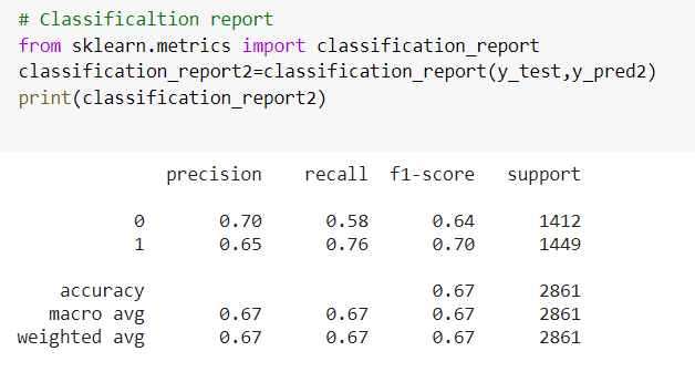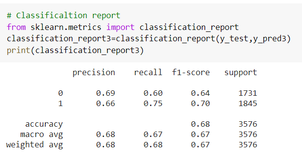 PRECISION: (69 FOR 0 AND, 66 FOR 1)