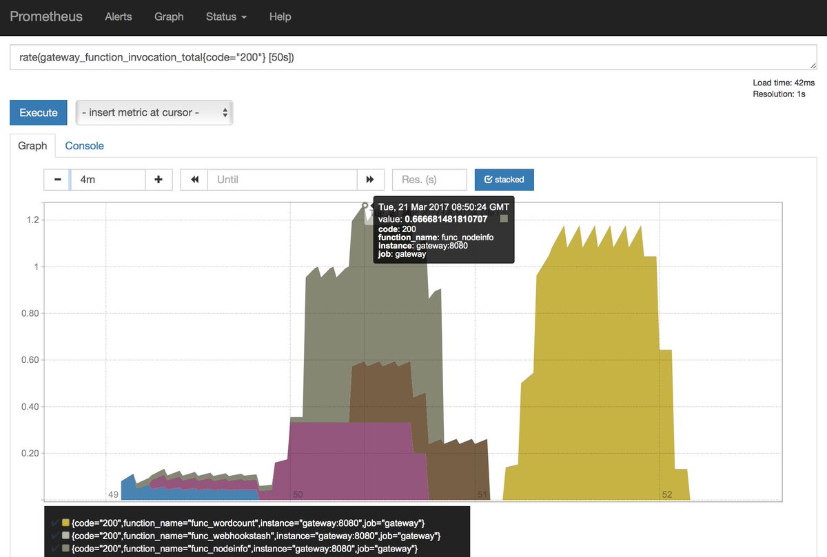 The API Gateway provides an external route into your functions and collects metrics in Prometheus. The gateway will scale functions according to demand by mangaging Docker Swarm replicas as throughput increases. A UI is baked in allowing you to invoke functions in your browser and create new ones as needed.